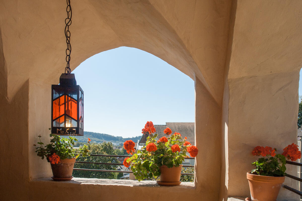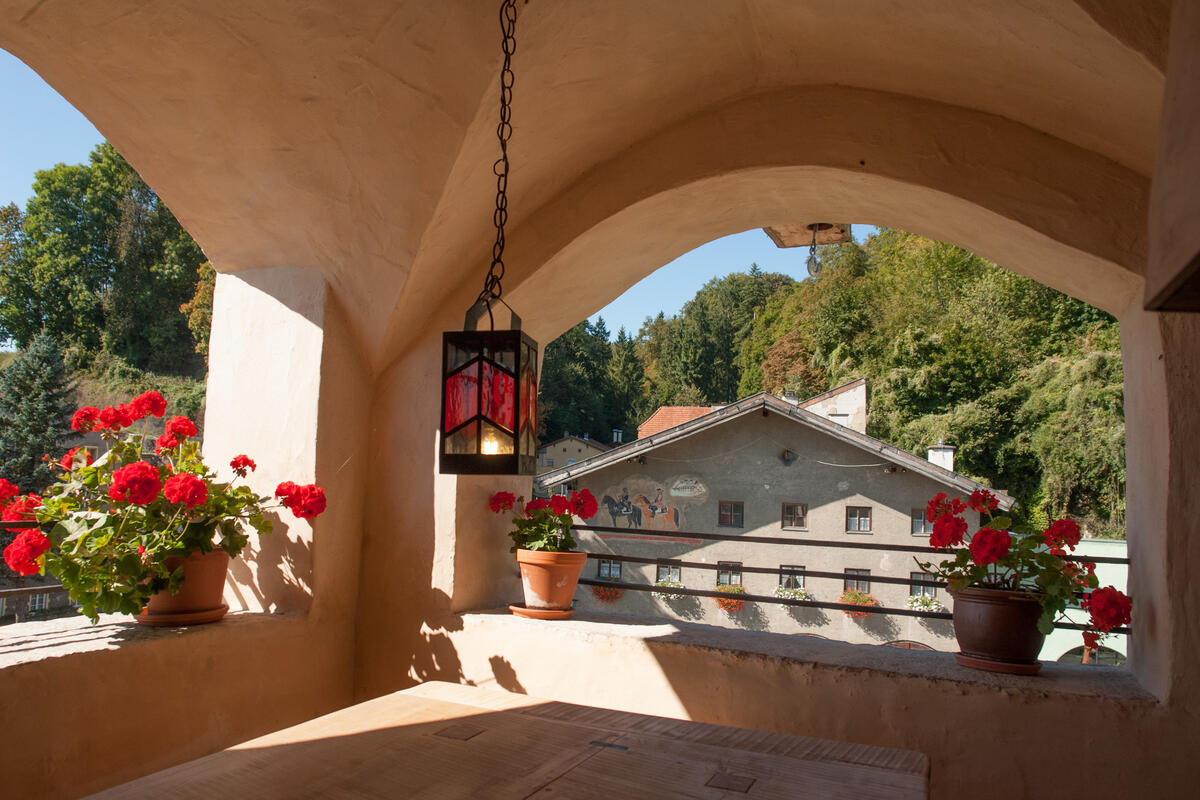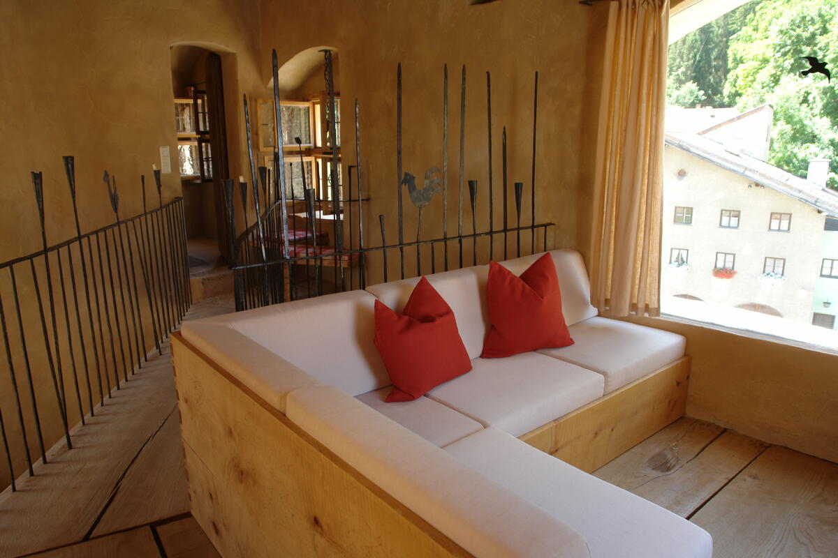 Das Turmpalais befindet sich auf der höchsten Ebene im mittelalterlichen Turm mit herrlicher Aussicht in alle Himmelsrichtungen. Hier präsentiert sich über den Dächern von Trostberg ein Feriendomizil mit drei Wohnebenen für bis zu fünf Personen.